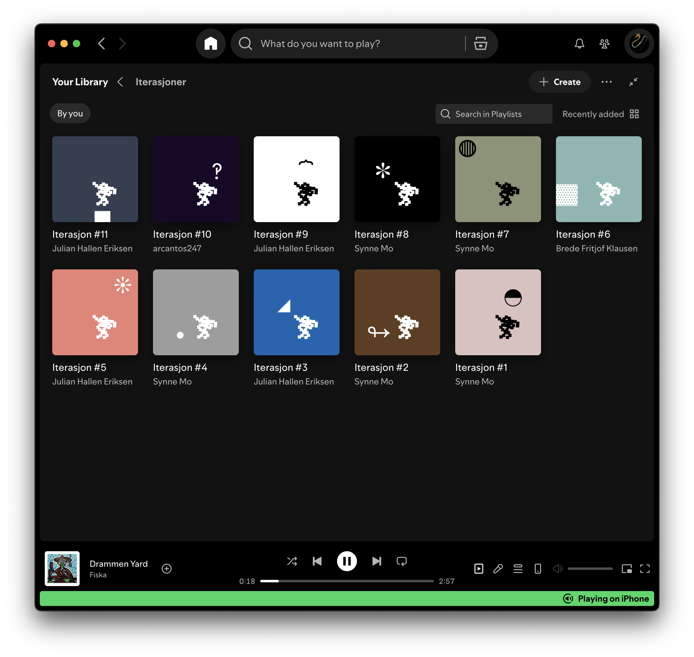 Vi har en interessant, liten lek gående på Iterate-kontoret. Hver uke lager vi en kontor-spilleliste i Spotify og fyller den med musikk sammen. Vi har klart å holdt dette ved like i 16 uker (iterasjoner), og det er ikke dårlig for en gjeng med altfor mange idéer!